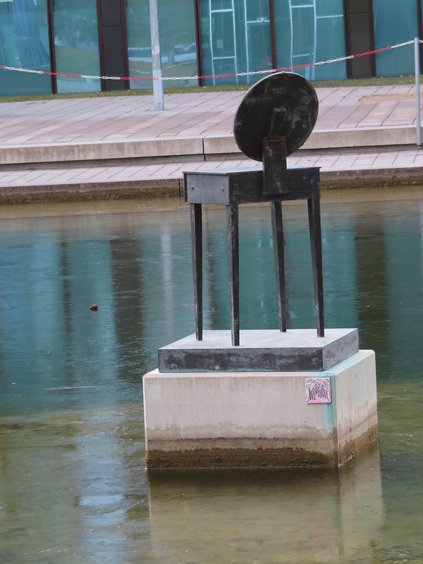 „Bronzed Vanity“ des Amerikaners Tom Burr ragt auf einem Sockel mitten aus dem Wasser. Eine Bronzeskulptur, die Erinnerungen an einen Spiegeltisch – ähnlich einem Schminktischchen – hervorruft. Dass dieser bei Windstille vom ruhigen Gewässer reflektiert wird, lässt mannigfache Assoziationen zu. Vergänglichkeit, aber auch das Ausloten des eigenen Spiegelbildes, das Eintauchen in eigene Untiefen drängt sich an Assoziationen in Kombination mit dem Aufstellungsort auf.