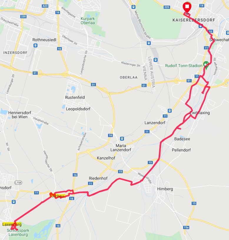 Nach 19 km erreichen wir Laxenburg, wo wir uns zuerst einen warmen Tee in einem Cafehaus gönnen.