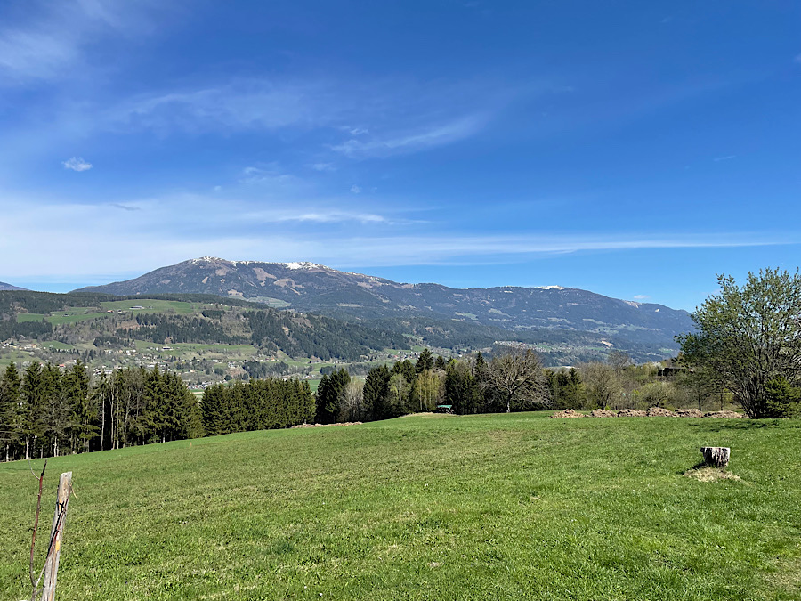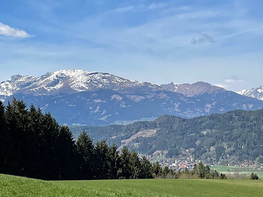 Nach mehr als 200 km Fahrt mit dem Womo landen wir am Nagelerhof mit seinen Standplätzen in Ziebl. Frau Granitzer führt uns persönlich zum Standplatz Nummer 1 mit herrlicher Aussicht.
