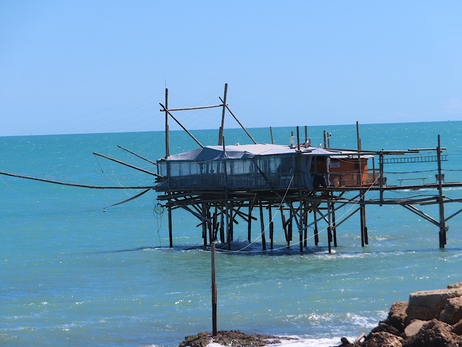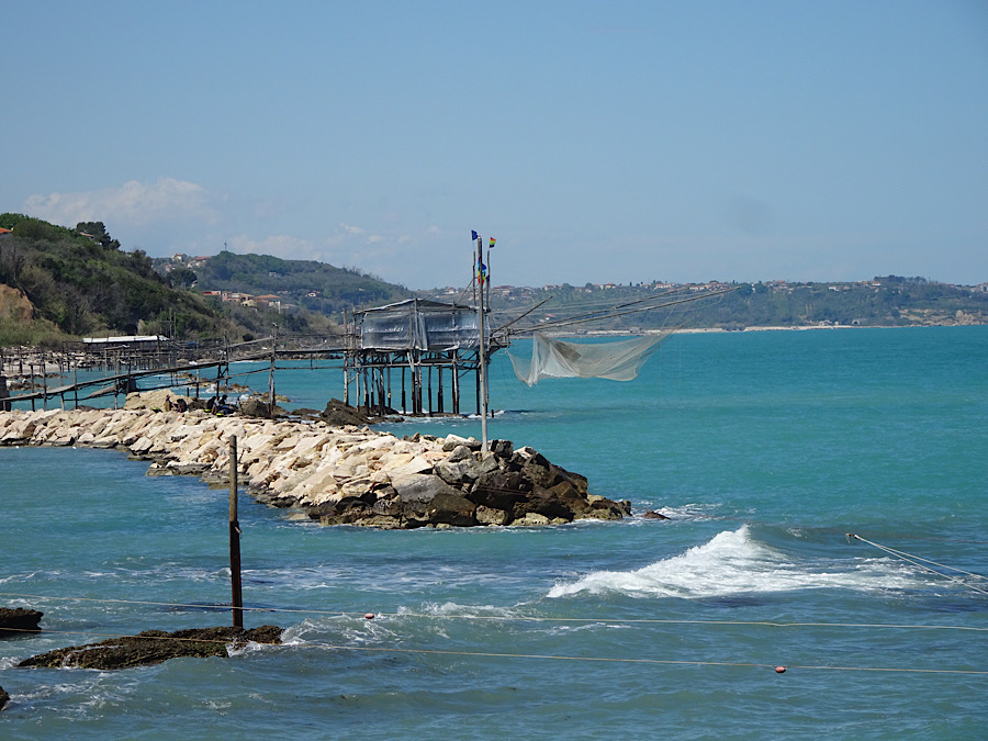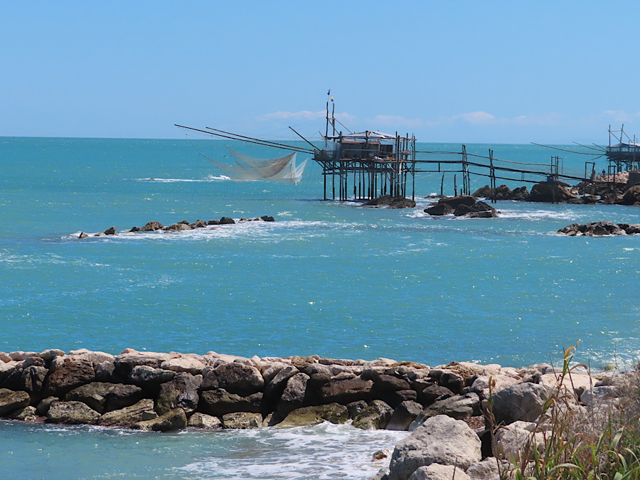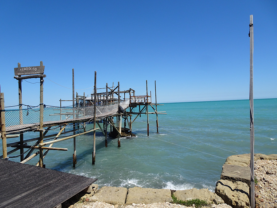 Im Trabocco Sasso della Cajana reservierten wir für die Mittagszeit einen Tisch. Die Parkplatzsuche für unsere beiden Wohnmibile war die größte Herausforderung. In 2,7 im Entfernung fanden wir eine Haltebucht. Es gibt einen toll ausgebauten Rad- und Wanderweg , der hier an der Küste entlang führt.