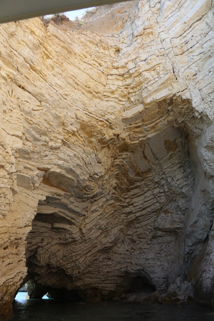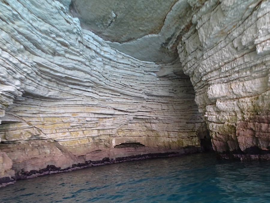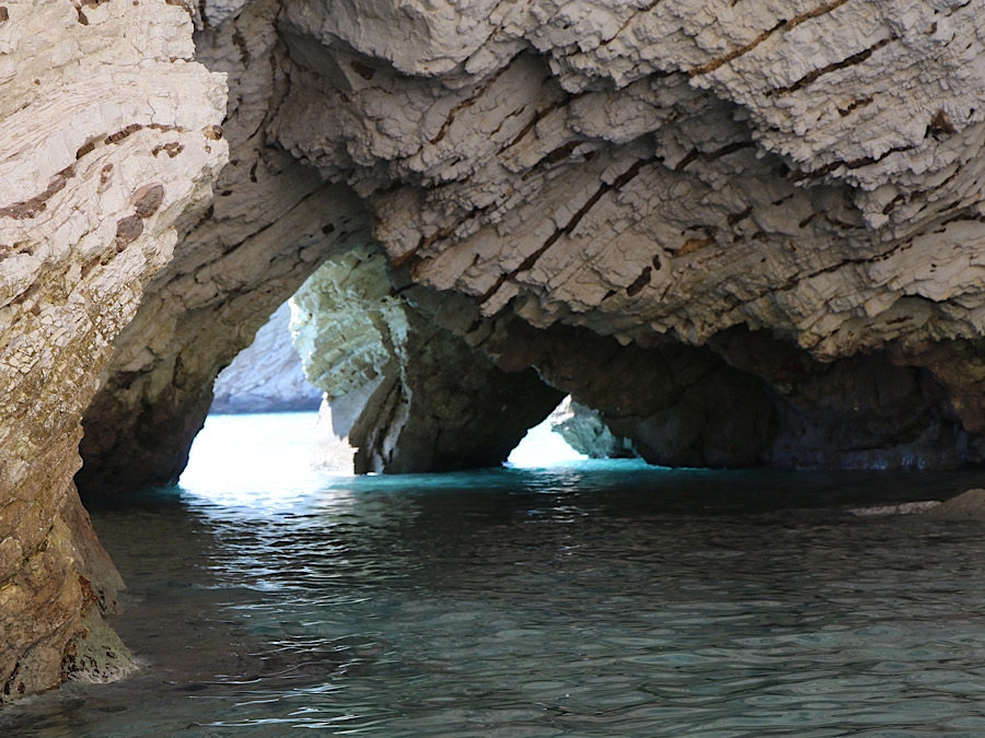 Nachdem wir ein kleines Boot gechartert hatten, konnte unser Kapitän auch die kleinsten Grotten befahren. Grotten, die nach oben offen waren oder mit verwinkelten, dunklen Durchgängenmit eigenen Kies- oder Sandstränden, waren sicherlich eine der Hauptattraktionen der Fahrt.