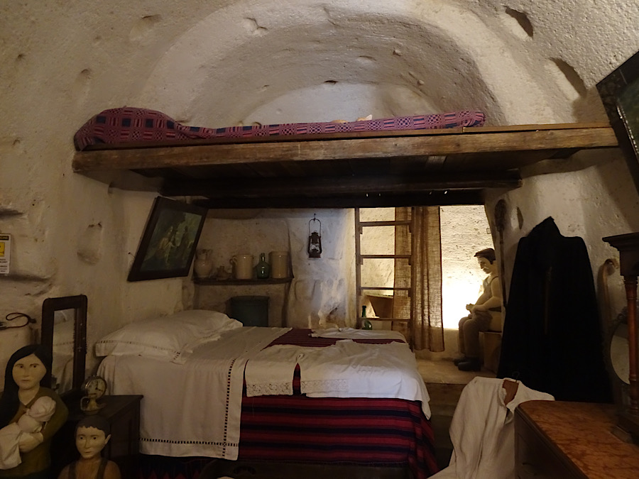 Das Haus in vico Solitario bei der San Pietro Caveoso Kirche ist eine typische Felsenwohnung mit Möbeln und Werkzeugen aus jener Epoche, die es den Besuchern ermöglicht, sich das Familienleben in den Häusern der „Sassi“ vorzustellen.