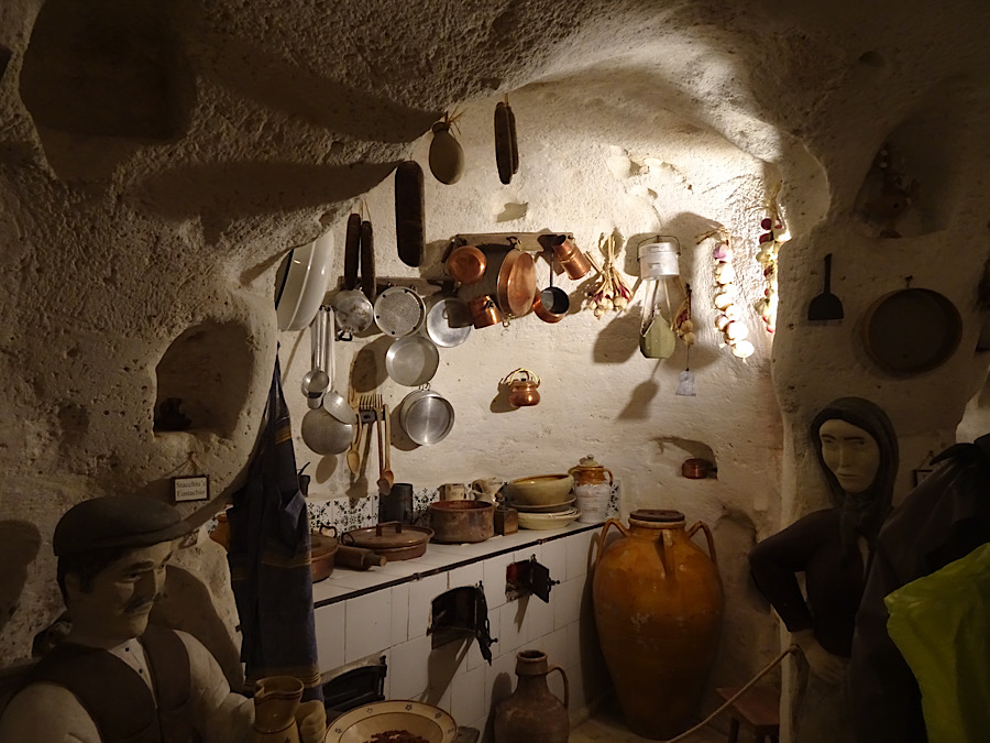 Wir besuchten bei unserem Rundgang die “Casa Grotta nei Sassi“, eine historische Sehenswürdigkeit mit nachgebauter Höhlenwohnung sowie alten Möbeln, Werkzeugen und Artefakten.