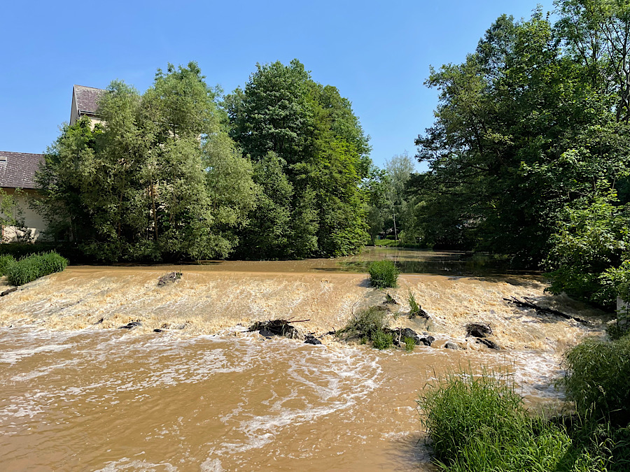 Die Gewitterzellen der Nachtstunden sind verschwunden und wir haben ein sonniges Outdoorfrühstück am späten Vormittag. Heute bekommen wir Besuch aus Wien. Bis zur Ankunft des lieben Gastes verbringen wir mit allerlei notwendigen Arbeiten rund um das Wohnmobil die Zeit. Die gewittrigen Regenschauer der letzten Tsge haben auch den Wasserstand der Deutschen Thaya erhöht.