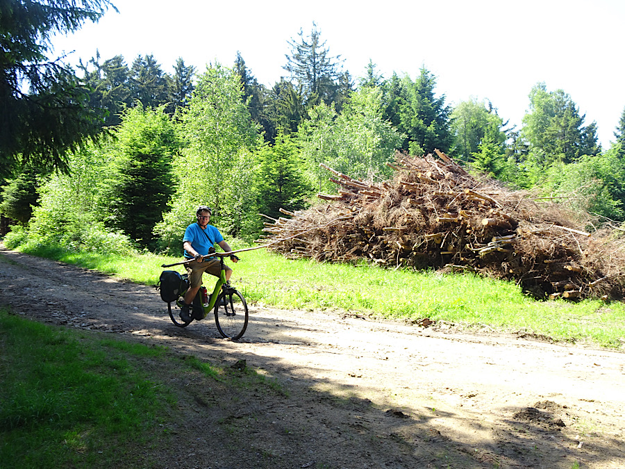 Dann machen wir uns über einige Caches der Angel Cache Dietmanns von schuh1971 her. Da wir mit dem Rad dieses Spezialequipment zum Heben nicht mithaben, sind wir auf die Ressourcen der Natur angewiesen und basteln uns selbst ein Hebewerkzeug. Der Cache “Armer Baum“ – GC7AVEC – vom selben Owner nehmen wir auch noch mit bevor wir das Ortszentrum von Dietmanns ansteuern.