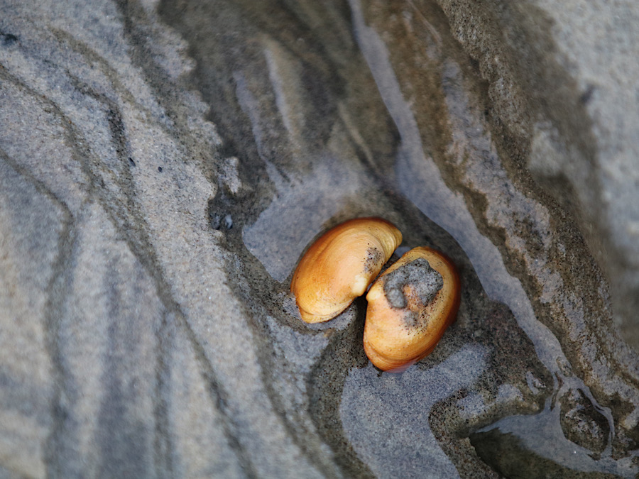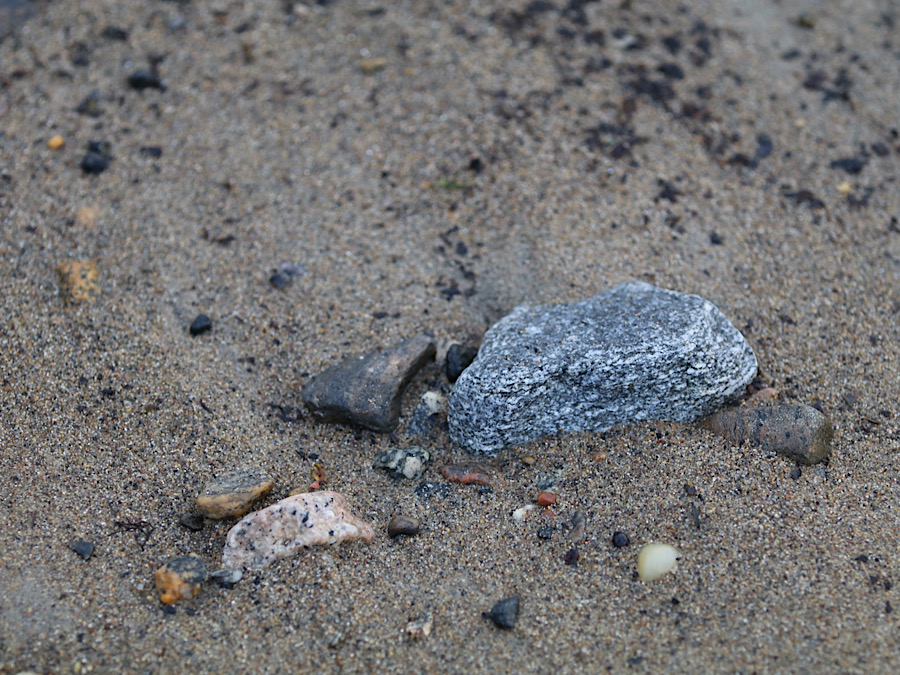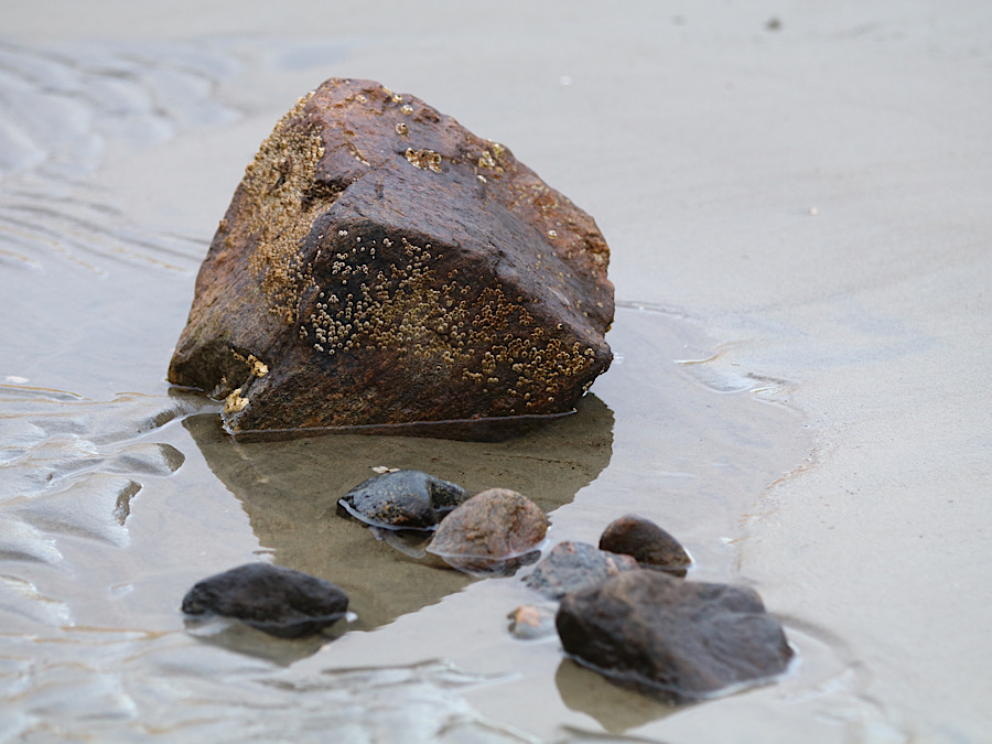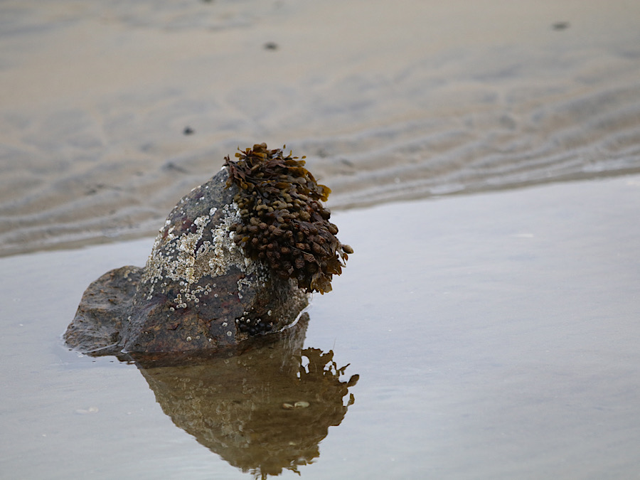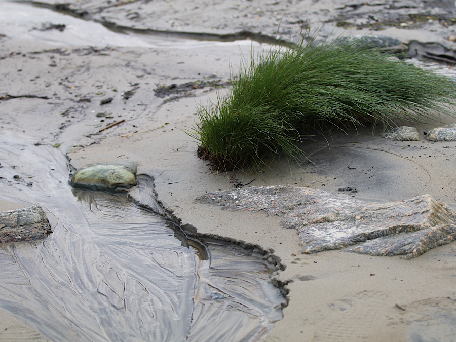 Gitti lässt das Womo gemütlich Richtung Strand, ja gibt es einen Sandstrand, runter rollen. Die meisten Plätze sind Wiesenplätze, einige aufgeschottert, die waren alle besetzt. Ich sehe auch Reifenspuren unserer Vorgänger vom Wegfahren auf der nassen Wiese. Der Regen der letzten Tage hat seine Spuren hinterlassen. Wir parken uns neben einen kleineren, schweizer Campingbus ein.