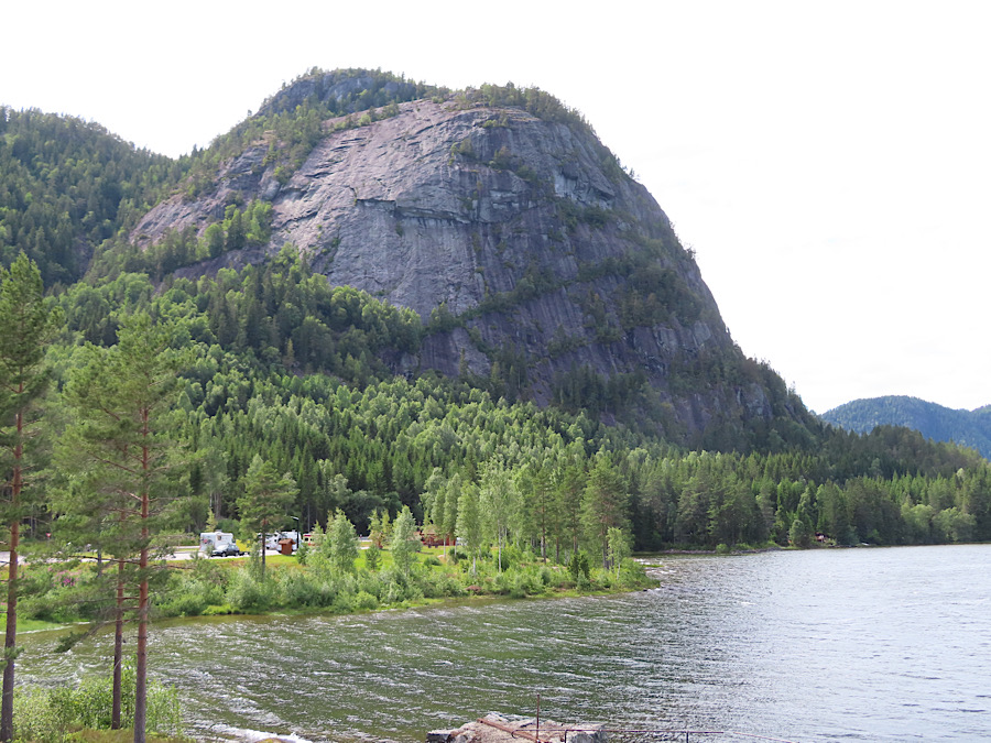 Entlang des Wanderwegsv östlich von Otra befindet sich ein Geocachingtrail mit 60 Geocaches. Mit dem Fahrrad kann die Strecke gut befahren werden. Ein Teil der Strecke ist Schotterstraße. Wir heben #059 Øst for Otra – GC75XRD von hunter 1968. Als wir uns dem Cache nähern biegen wir umdie Ecke und stehen vor einem PKW aus Wien.