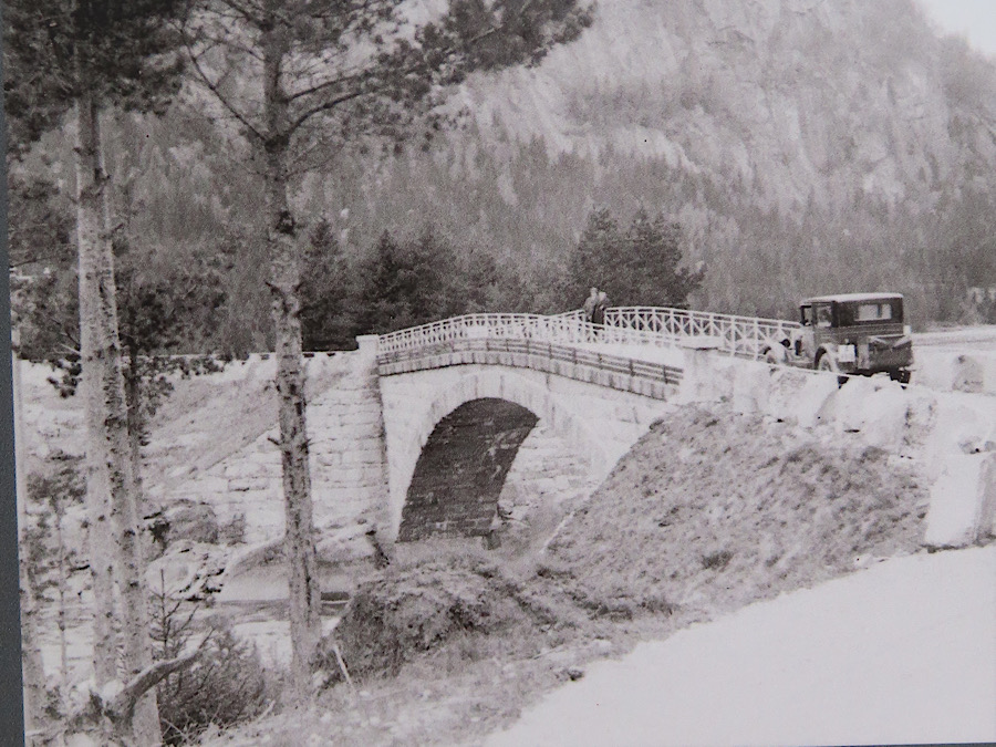 Neben einer neueren Straßenbrücke aus dem Jahr 1963 ist auch eine alte Steinbogenbrücke aus dem Jahr 1915 erhalten geblieben. Die erste Brücke hier war eine Holzbrücke aus dem Jahr 1858.