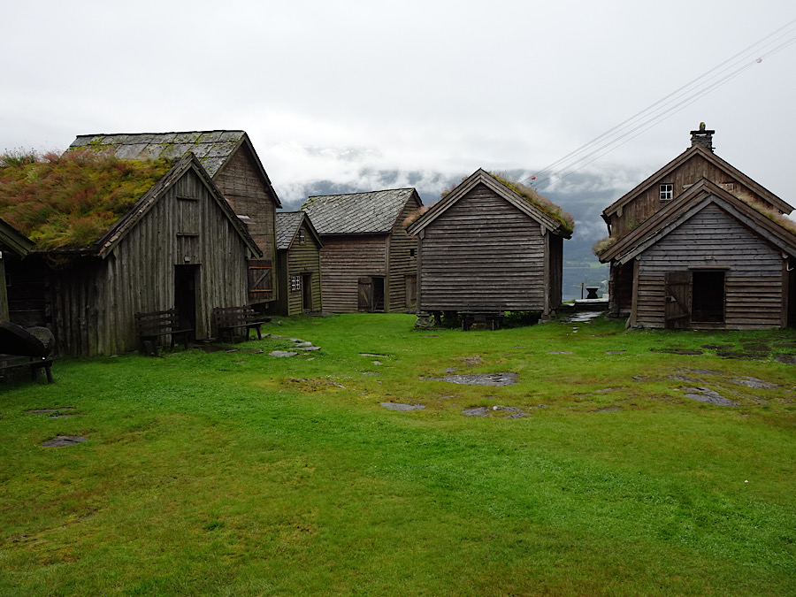 Nach dem die Witterung regnerisch ist verlegen wir unser Programm auf einen Museumsbesuch in Voss. Das 1917 gegründete Museum hat die Hofanlage mit 18 Gebäuden von den beiden Familien Møsterverworben. Das älteste Gebäude ist die Feuerstelle, wahrscheinlich aus den 1500er Jahren. Die neuesten Häuser stammen aus den 1880er Jahren.