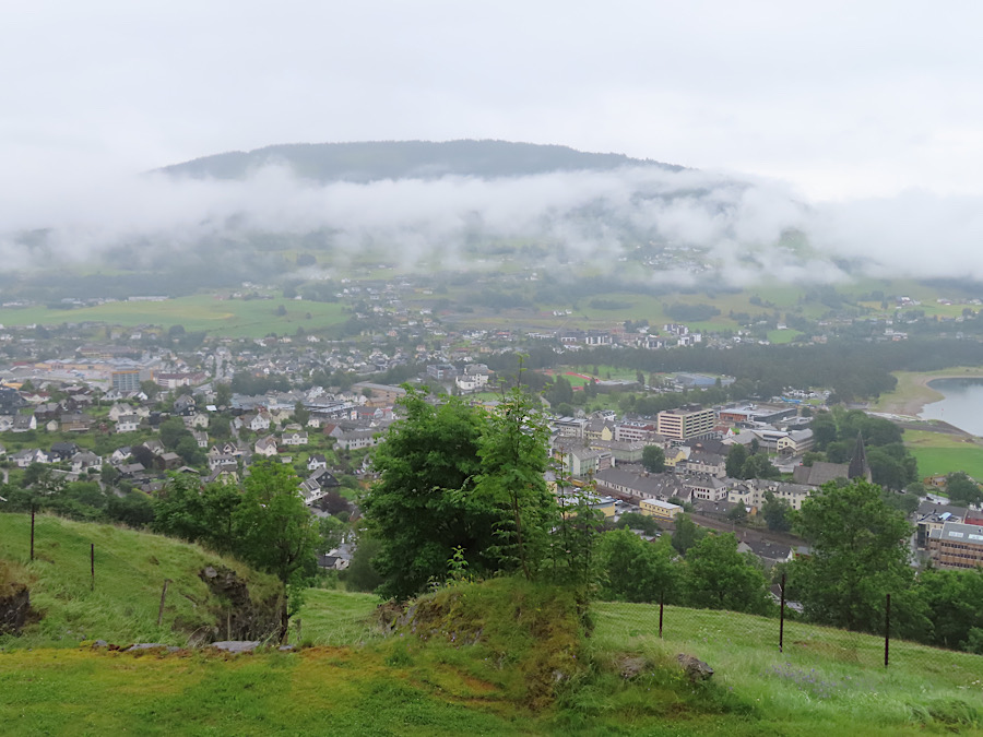 Die Hofanlage liegt oberhalb Voss und bei Schönwetter mit herrlichen Ausblick auf die Stadt. Die Seilbahn auf den Hausberg Hangursnolten fährt am Museum vorbei. Für die Anfahrt zum Museum (60°38′00.38″N 06°24′45.6″E) schickte uns das Navi durch Seitengassen, die mit dem Womo eine Herausforderung sind. Ausserdem ist der letzte Kilometer der Zufahrt einspurig mit wenigen Ausweichstellen.