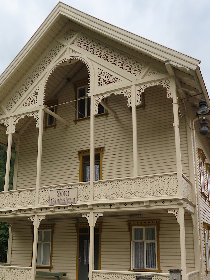 Wir besuchen bei diesem Rundgang das Norsk Villakscenter. Im angeschlossenen Restaurant wollten wir einen Lachs verspeisen, aber es gab nur Pizzen oder Burger -🤔 – also ab zu den nächsten Stationen. Weiters gings zum Synneva Eris Huset, dem Lindstrøm Hotel, Lærdalsøren Hotel und der Løyntnandbryggja. Den dazugehörigen Bonuscache holten wir uns auch.