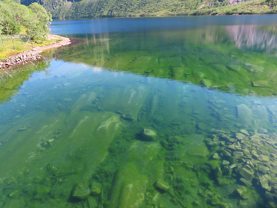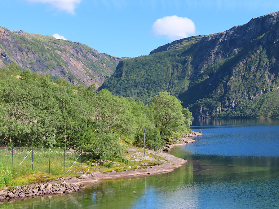 Nach dem Durchfahren des 7624 m langen Svartisentunnel, der 1986 gebohrt wurde, machen wir am Fykanvaten einen Stopp, um uns die Füsse zu vertreten und dabei ein paar Geocaches zu heben.