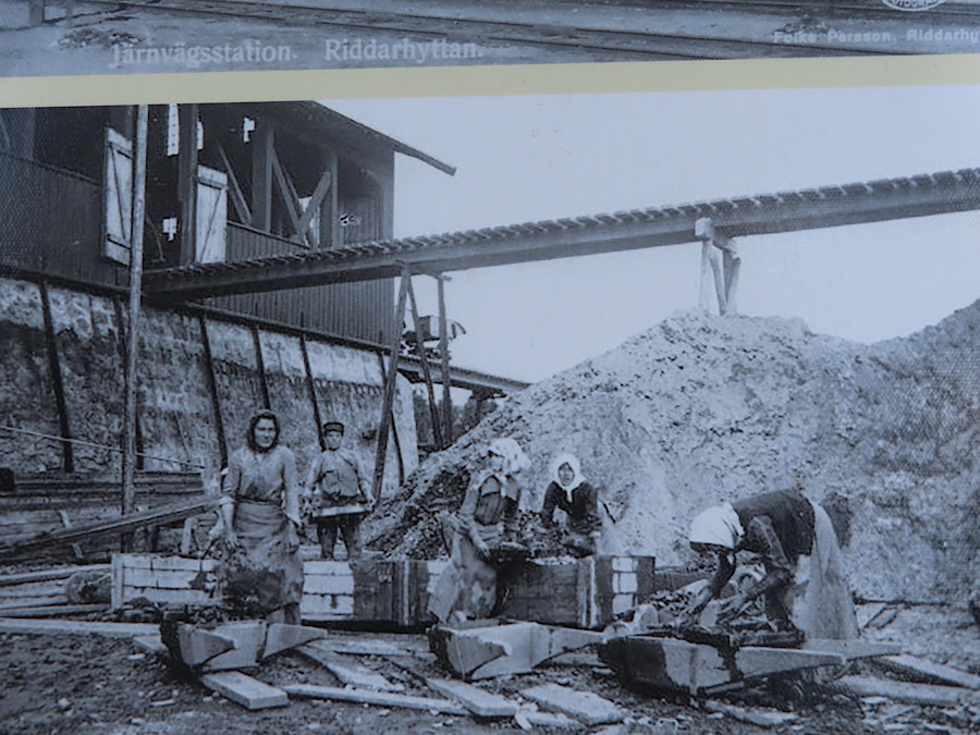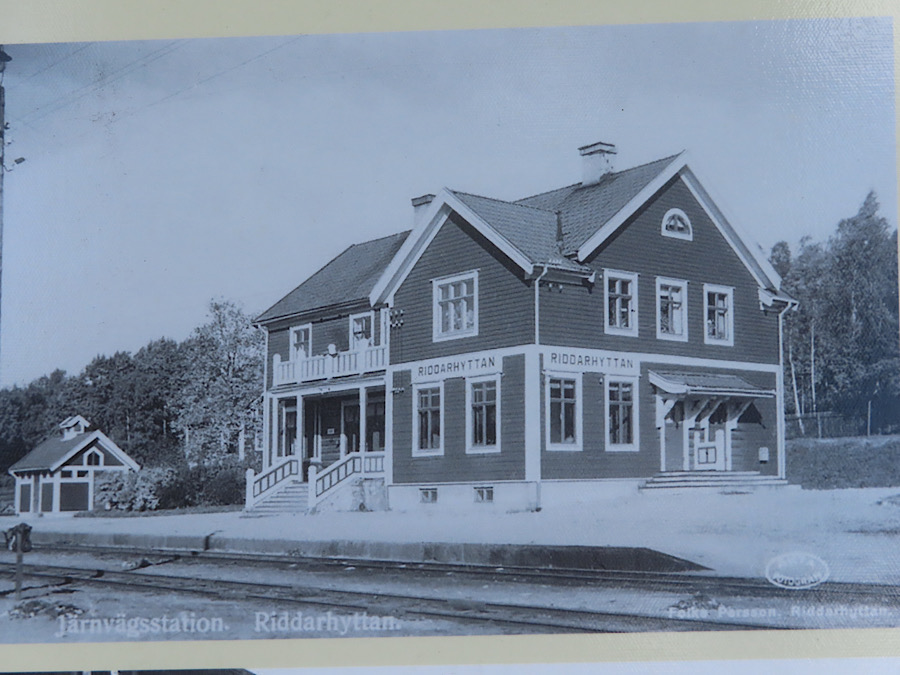 Für den Schwertransport wurde eine Eisenbahn benötigt, um die Erzeugnisse der Minen und Eisenbetriebe zum Hafen nach Köping am Mälarsee und weiter nach Stockholm zu bringen. Die Bahn wurde 1866 eingeweiht und einige Jahre später bis Riddarhyttan erweitert. Der obige Lokschuppen ist der einzige, der entlang der Strecke übrig geblieben ist. 1952 fuhr der letzte Personenzug, 1968 wurde der Güterverkehr eingestellt.