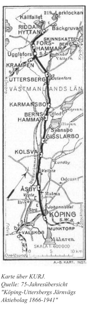 KURJ war eine besondere Bahn nicht zuletzt auf Grund der Spurweite, aber auch durch ihre Altertümlichkeit. Als andere Bahnen Vacuum- und später Druckluftbremsen einführten, wurde erst nach dem Verkauf an die Staatsbahnen SJ die Handbremsung von KURJ abgeschafft. Diese Bahn kaufte im Vergleich zu anderen Bahnen keine Triebwagen, sondern fuhr bis zum Schluss mit Dampflokbespannten Personenzügen (durch Umbau wurden in den dreissiger Jahren moderne Waggons geschaffen).