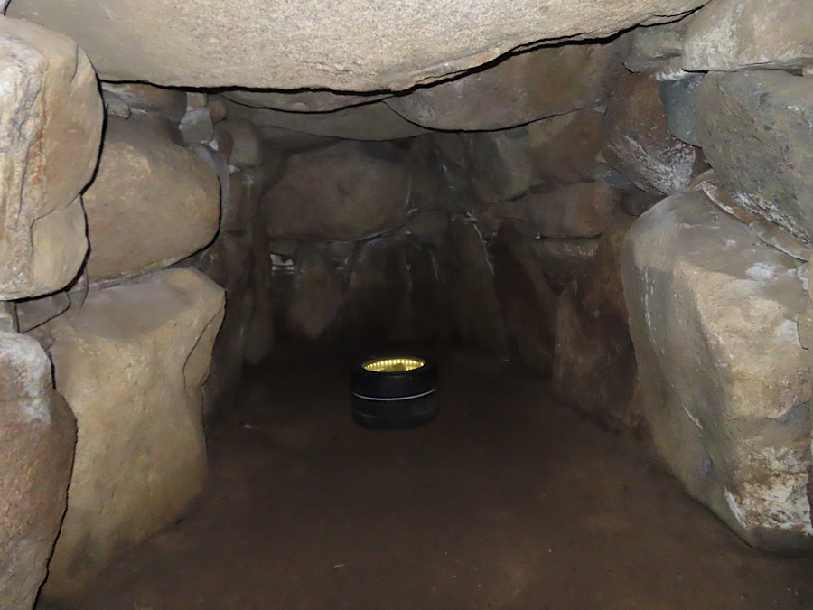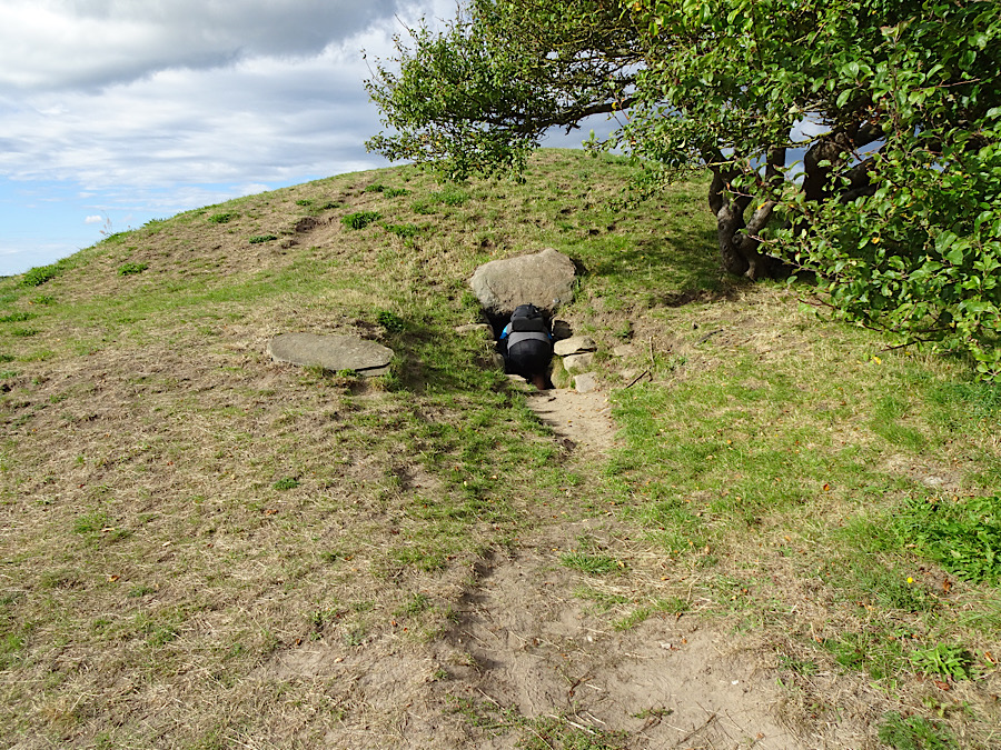Das Ganggrab Birkehøj am Odden- und Troldhøjvej bei Nyrup im Odsherred ist eine der größten Megalithanlagen des Landes. Die Kammer ist zwar nicht der längste, höchste oder breiteste, aber vermutlich die mit dem größten umbauten Raum. Das Ganggrab wurde in den Jahren 2002–2003 umfangreich restauriert. Der Birkehøj ist ein runder Hügel von etwa 30,0 m Durchmesser und 2,0 m Höhe. Die Kammer ist mehr als 11 Meter lang, 2,0 Meter breit und hoch. Auf den Knien bin ich hineingerobbt, um dann ein paar Fotos im finsteren Grab zu machen.