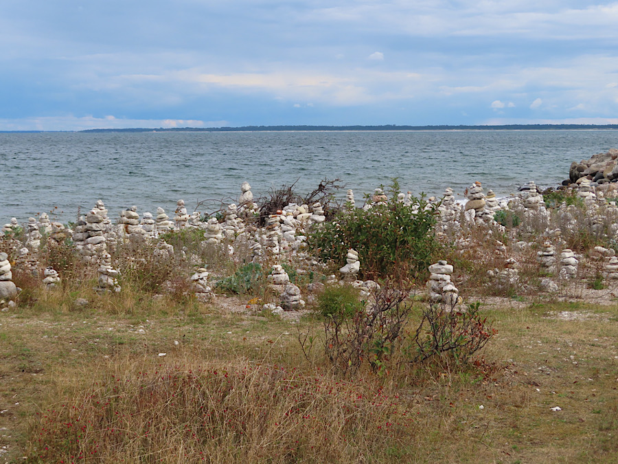 Dunkle Wolken, hohe Föhren sind unsere Begleiter am Klintvej in Nyrup. Unser Ziel sind die Klintjeberge an der Küste, die steile Pfade, schöne Aussichten und viel frische Meeresluft versprechen. Natürlich locken uns diverse Geocaches in dieser Gegend. Vor dem kleinen Hafen in Klintje hat TP63 – På vej til Klint havn – GC8DE2P ausgelegt. Die Küste hier hat zwei Gesichter: