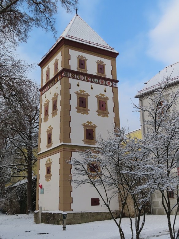 Bemerkenswert sind die schönen Renaissance-Architektur- und Wappenmalereien an der Fassade des Turmes. Die Wappen symbolisieren die verschiedenen Besitzungen des Hauses Habsburg. (Aus dem Listing des Owners)