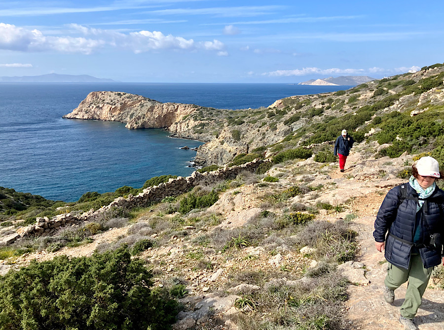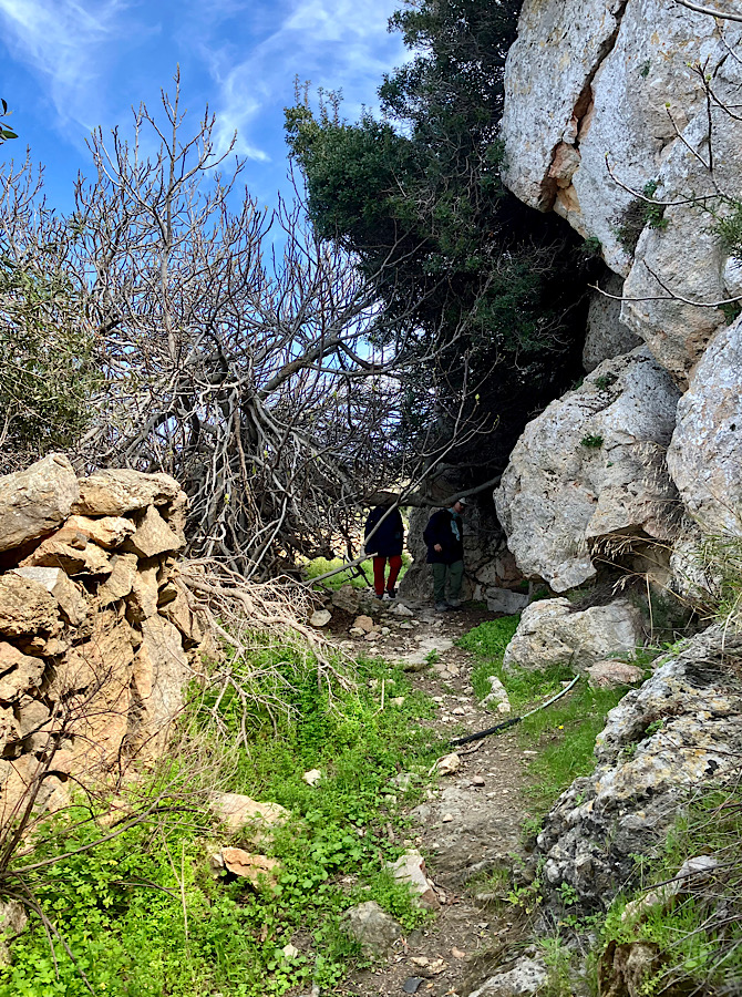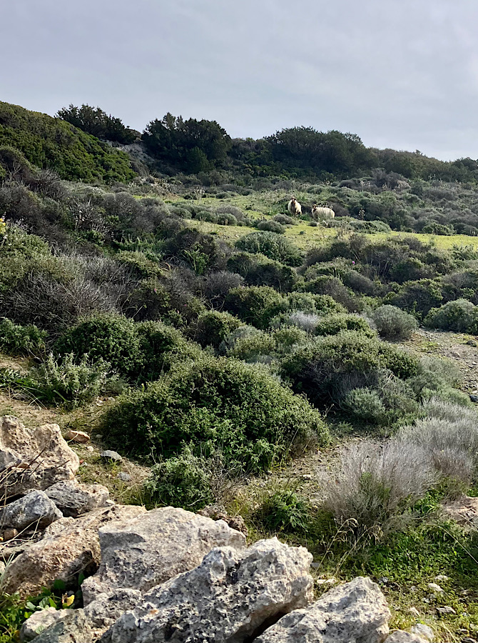 Nun steuern wir auf Brot und Käse zu, zwei Hügel auf dem Weg von uns zur Küste. Zwei Steinmauern begrenzen den traditionellen Wanderweg von uns quer durch die Hügellandschaft der Insel. Der Cache „Bread and Cheese“ – GC7JT97 von DidianRay fanden wir.