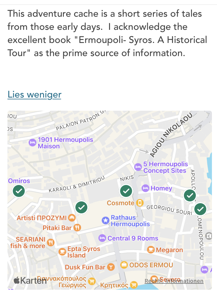 Der Adventure lab – Ermoupoli – Tales from the Early Days von Didier Ray führte uns zu den diversen Statuten und Gebäuden dieser Stadt. Manchmal eine ziemliche Herausforderung für uns, weil wir die griechischen Inschriften entziffern mussten und sie in den richtigen Kontext zur Fragebeant-wortung zu bringen.