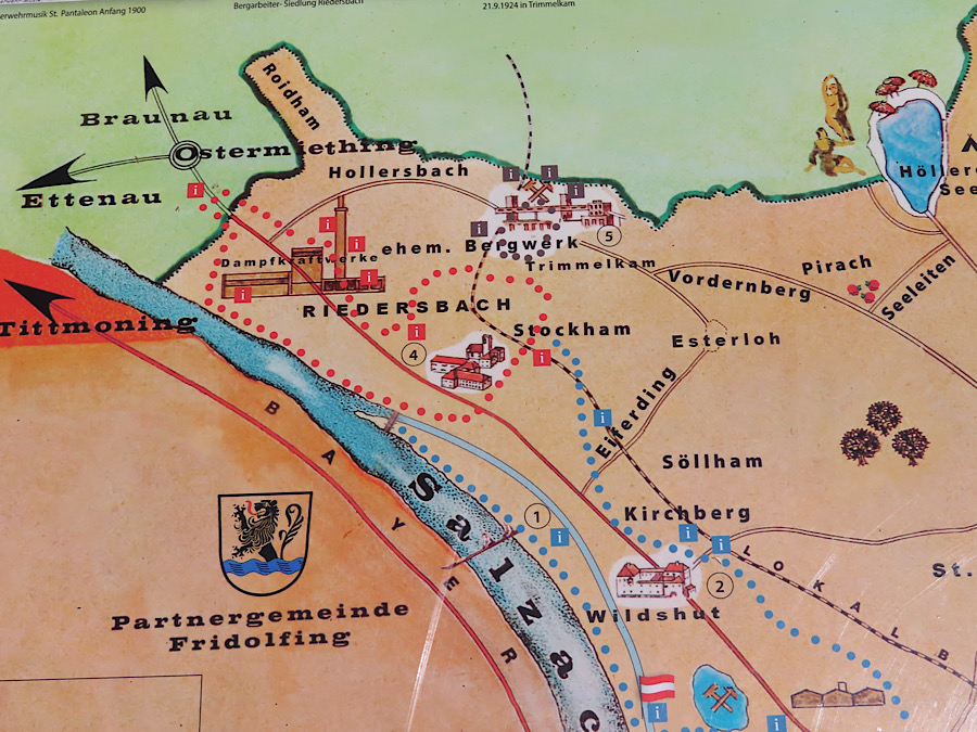 An der Salzach gibt es einige Info-Tafeln zum dazugehörigen Themenradweg.