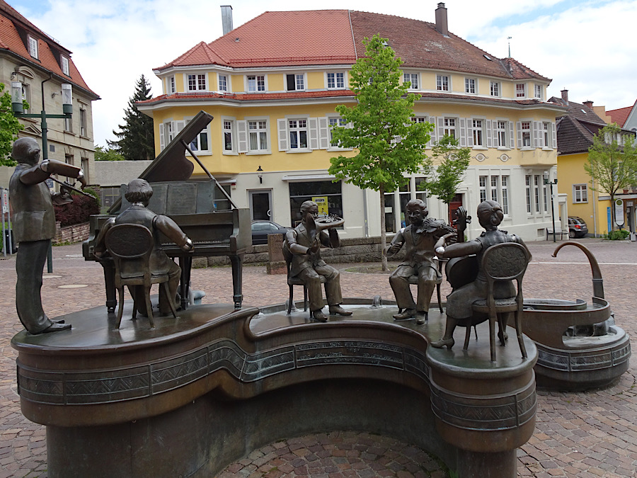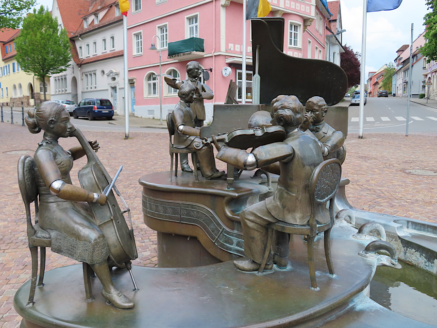 Zum Abschluss unser Nachmittagstour wählten wir noch den Multicache „Musikantenbrunnen“ aus. Dazu besuchten wir ein spezielles Musikemsemble vor dem Rathaus.