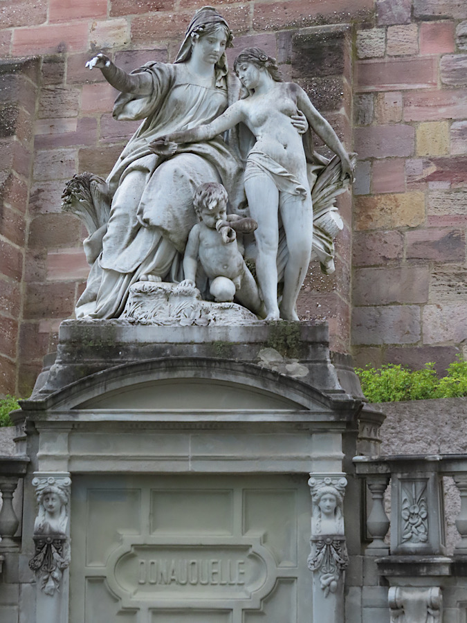 1875 wurde die Quelle des Donaubachs nach Plänen von Adolf Weinbrenner als kreisrundes Quellbecken gestaltet und mit Ornamenten von Franz Xaver Reich verziert. Ebenfalls von Reich stammte die Skulptur Die junge Donau als Kind im Schoße der Baar, die dort aufgestellt wurde. 1895 schuf der Künstler Adolf Heer eine Figurengruppe über der Einfassung, die „Mutter Baar“ darstellend, wie sie ihrer „Tochter“, der jungen Donau, den Weg weist.