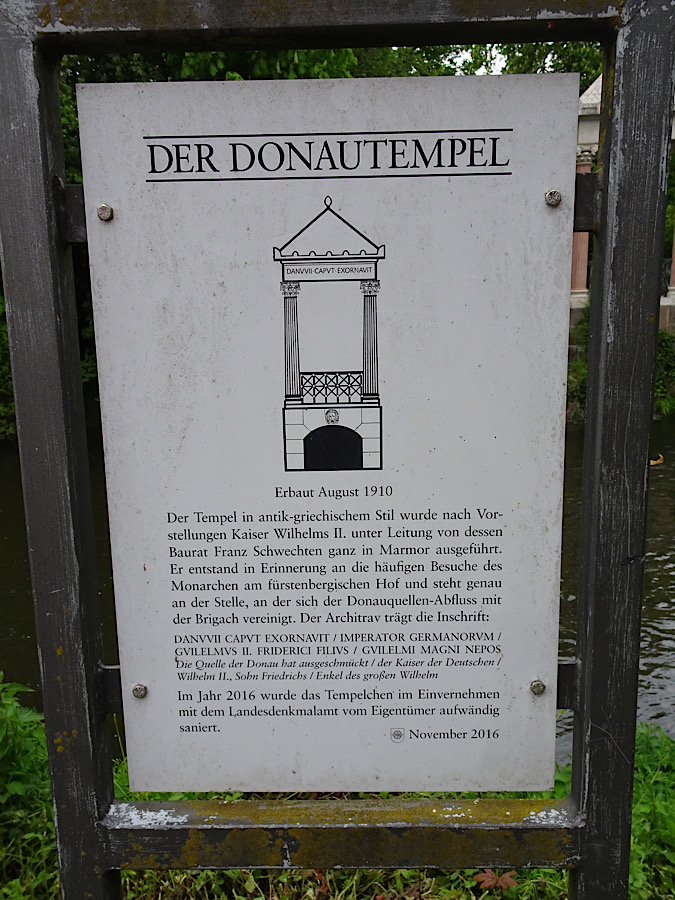 Bei diesem kleinen Rundgang durch das Zentrum Donaueschingens möchte ich Euch einige hoffentlich interessante Sehenswürdigkeiten zeigen. Die fünf Stationen können in beliebiger Reihenfolge absolviert werden, aber für den Bonus (GC8YBXT) ist es kein Fehler, den Donautempel als letztes zu besuchen.