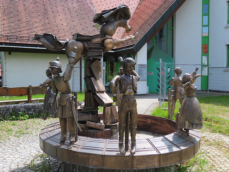 Auf einem Platz vor dem Landratsamt befindet sich der Amtschimmelbrunnen. Dieser Brunnen mit 1,5 Tonnen Gewicht war der erste der errichteten Figurenbrunnen und stellt symbolische die Bürokratie dar.