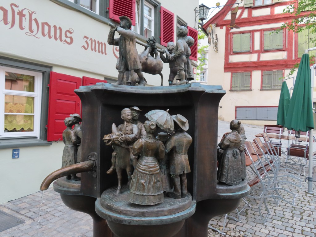 Diesen herrlichen Rundgang verdanken wir jotheonly mit seinem Adventure Lab. Ein bißchen hatte ich den Eindruck, dass bei den Brunnen schwäbisch–alemannische Fasnet bei der Ausführung mitgewirkt hat. obdie Narrenfiguren Aneweible, Flachsnarr und Spindelnarr als „Pat*in“ bei den Ausführungen gestanden haben?