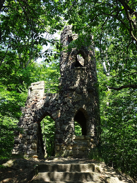 Brigitte steigt die zahlreichen Stufen zur Bastei am Schloßberg hinauf, um die die Lösungen zum Lab zu suchen, während ich die Fahrräder mit den Satteltaschen und dem technischen Equipment bewache.