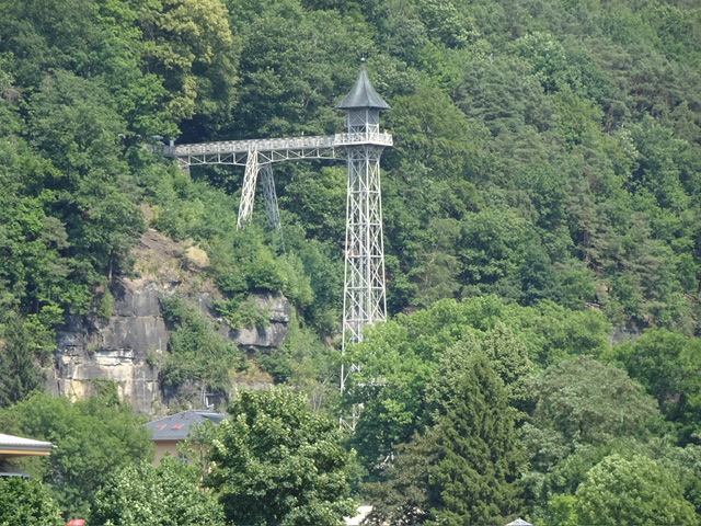 Der historische Personenaufzug nach Ostrau ist eine 50 Meter hohe, freistehende Eisenkonstruktion, die zum höher gelegenen Ortsteil Ostrau führt. Am Ostersonntag 1905 wurde der Aufzug offiziell eingeweiht. Wegen der Aussicht über die Sächsische Schweiz um Bad Schandau, insbesondere die Schrammsteine, aber auch wegen der dezenten Jugendstilornamentik zählt eine Fahrt mit diesem technischen Denkmal zu den touristisch beworbenen Attraktionen. Wir nutzen ihn für die Lösung der fünften Station des Lab.