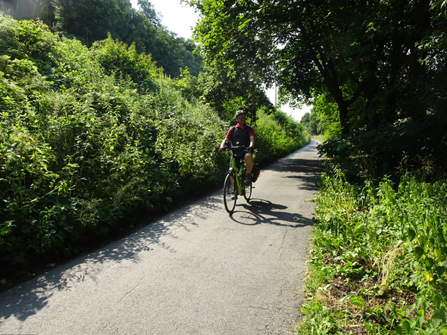 Nach einem gemütlichen Outdoor-Frühstück, wo wir über den Schatten eines Baumes bei jns am Stellplatz froh sind, denn die Temperaturen klettern beteits vormittags Richtung 30 Grad, packen wir unsere Satteltaschen und schwingen uns auf die E-Bikes.