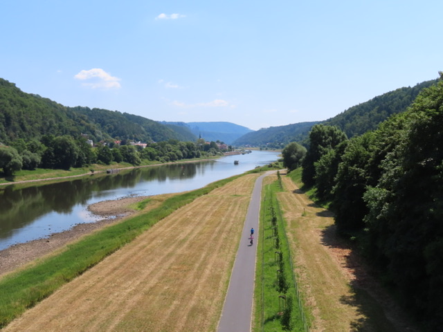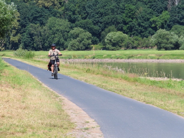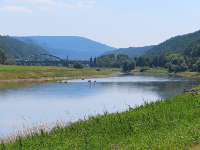 Vom Campingplatz aus beobachten wir wie die Elbe als Freizeitparadies genutzt wird. Heute wollen wir selber eine kurze Strecke des Radweges entlang des 1100 km langes Flusses, der in Tschechien entspringt und nach Hamburg in die Nordsee fließt, für uns zur Erkundung von Bad Schandau und für das Geocaching nutzen.