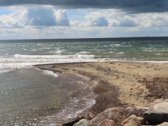 Von Tönning fahren wir weiter Richtung Flensburg, wo wir die deutsch – dänische Grenze passieren. Brigitte hat einen Campingplatz in Midtjylland gefunden, wo für 2 Wohnmobile Platz ist. Wir treffen hier gute Freund*innen Renate und Herbert aus Stammersdorf in Wien, die ebenfalls mit dem Womo in Skandinavien unterwegs sind. Wir treffen uns am Rosenvold Campingplatz südlich von Stouby. Hier hat es von der Temperatur deutlich abgekühlt. Es hat 10 Grad weniger um die 21 Grad und mittlerweile sehr wechselhafte Wiiterung. In einer Regenpause machen wir unseren ersten Spaziergang an der Küste.