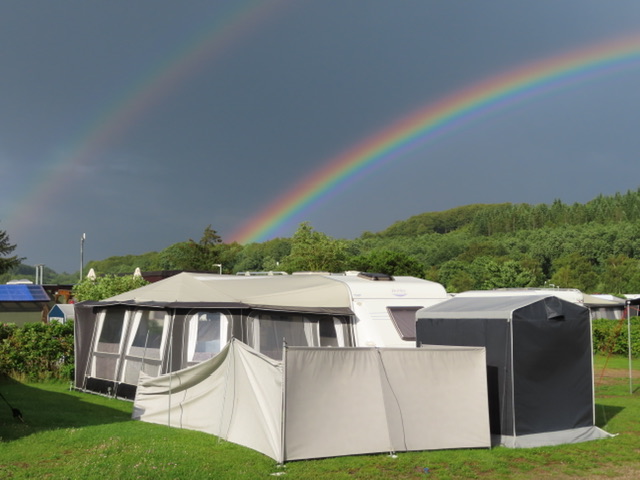 Nachdem wir in einem Buchgeschäft eine Straßenkarte von Dänemark erstanden haben, geht es zurück zum Campingplatz. Dort bereit Herbert unter teilweise abenteuerlichen Bedingungen bei Sturmboen und Starkregen herrliche gegrillte Hühnerteile zu.