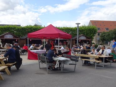 Mitten in der Stadt ein kleiner „Markt“ mit Holzhütten, die Toristinformation ist dort auch vertreten, zentral am Platz ein paar Tische mit meist älteren Publikum, wo gerade Bingo gespielt wird und ein resolute Spielleiterin gerade Zahlen ausruft.