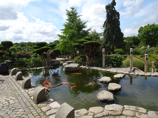 Wir steuern in Stenlille (55.532121, 11.539905) einen floristische Besonderheit Dänemarks an. In einem kleinen Dorf auf Seeland hat Jørgen Nielsen einen wunderschönen Zen-Garten aufgebaut. Auf der einen Seite der Strasse beim Haupthaus hat er mit 8000 Tonnen Steinen eine Berglandschaft mit mehreren Teichen, verschlungenen Wegen und Grotten erbaut.