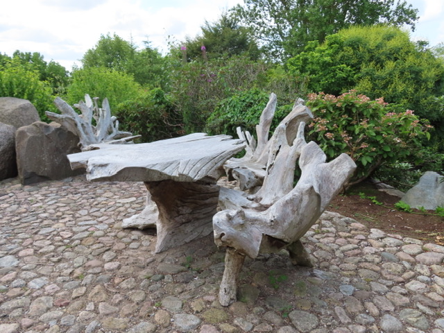 Zum Abschluss des mehrstündigen Besuchs suchen wir uns eine Sitzgelegheiten, die es zahlreich zum Verweilen im Garten mit dem Blick auf den Teich gibt, um gemütlich unser Nachmittagspicknick zu gemießen.