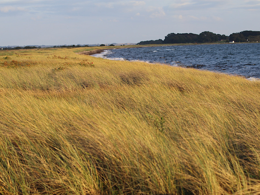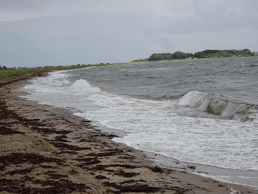 Wir haben unser Quartier für vier Tage ca. 10km südwestlich von Assens am Å-Strand bezogen. Auch hier sehr wechselhaftes Wetter, allerdings mit dem bisher sonnigsten Tag unseres Aufenthalts in Dänemark in diesem Jahr. Dreimal marschierten wir abends den Kiesstrand entlang. Dabei hörten wir das Rollen der Steine, wenn die Brandung mitgeschwemmte Steine über den Kies rollt. Es gibt hier auch einen ca. 300 m langen Sandstrand mit etwa 20 m Breite, der bei wärmeren Temperaturen zum Baden einlädt.