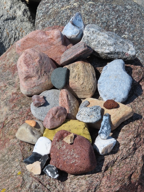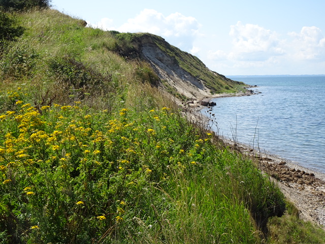 Wir beobachten hier in Dänemark, dass die Zugänge zum Strand immer öfter in einem „Privatvej“ enden. Oder ganz knapp an die Küste Ferienhäuser gebaut werfen, damit nur ein schmaler Streifen zum Weitergehen überbleibt. Zrotzdem gelingt es uns immer wieder über die letzten Centimeter am Strand zu den Caches zu kommen. Den Cache Kropstenen, zu Ehren eines sagenumgebenden Stein geschaffenen Cache vom Klabautermanden, erreichen wir auf diese Weise.
