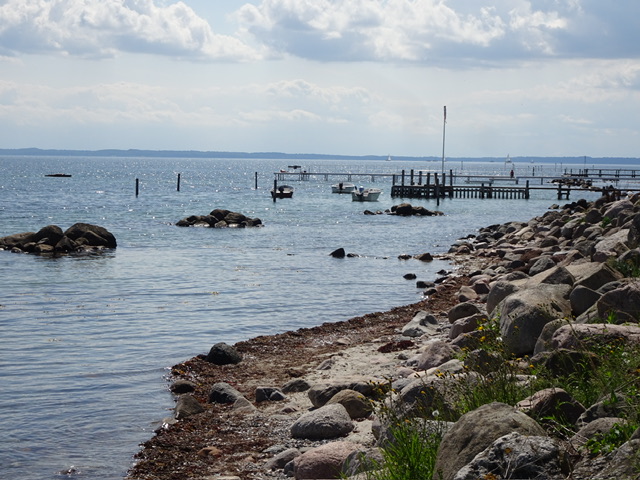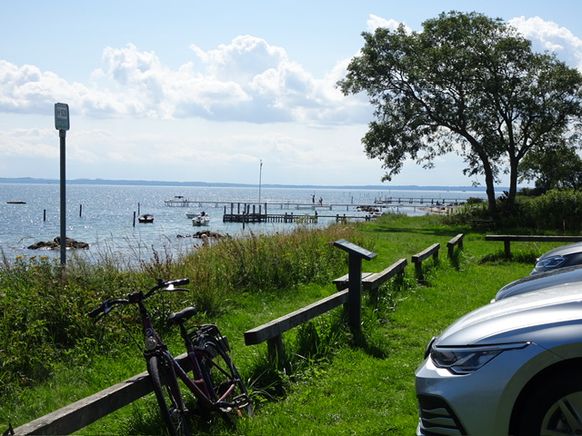Als nächstes steuern wir einen. beliebten Aussichtspunkt am Beginn der Insel an. Von hier haben eine schöne Aussicht (55.174343, 9.985426) über die Bucht. Fischer*innen nutzen auch gerne die Stelle zum Einstieg für das Angeln nach Meerforellen.
