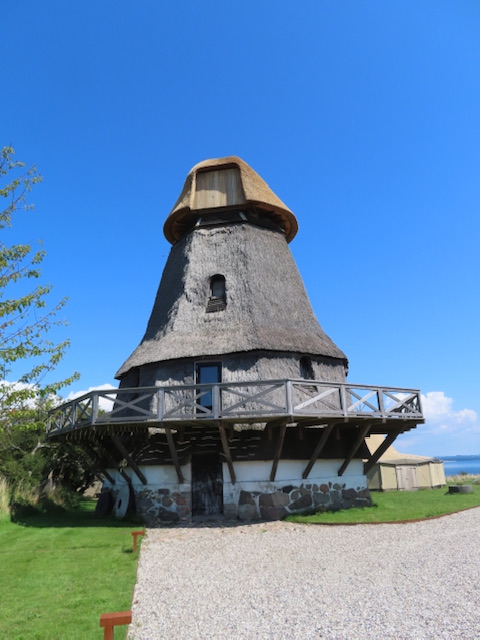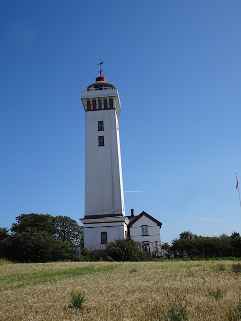 Die heutige Halbinsel Helnæs ist durch einen 2,8 km langen Damm mit dem Festland verbunden. Von unserem Campingplatz sehen wir das Leuchtfeuer „Helnæs Fyr“.
