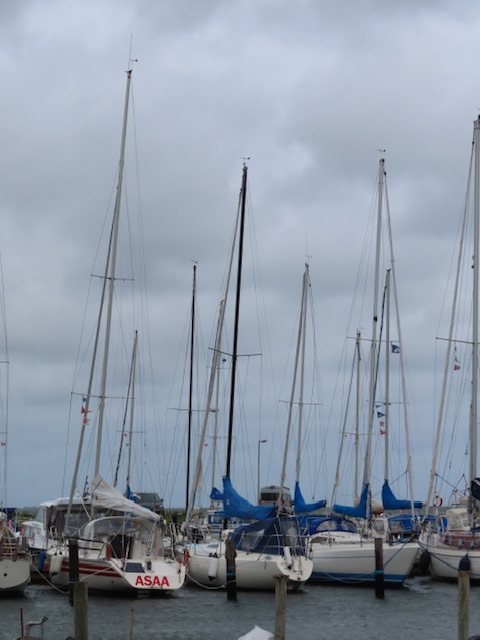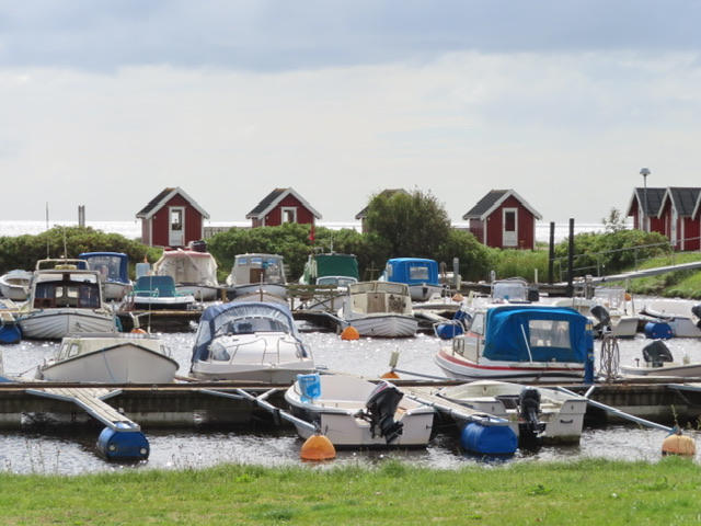 Nach den stürmischen Tagen steuerten wir etwas nördlicher den Hafen von Asaa an. Zwar wehte immer noch heftiger Wind, aber die Sonne ließ sich blicken und die heftigen Böen wandelten sich in heftige Windstösse. Die Temperaturen kletterten auch wieder Richtung 20 Grad. Wir hatten hier einen Stellplatz 5 m entfernt vom Pier mit direktem Blick auf das Hafengeschehen. Rechts neben uns stand ein schwedischen Paar, links ein norwegisches.
