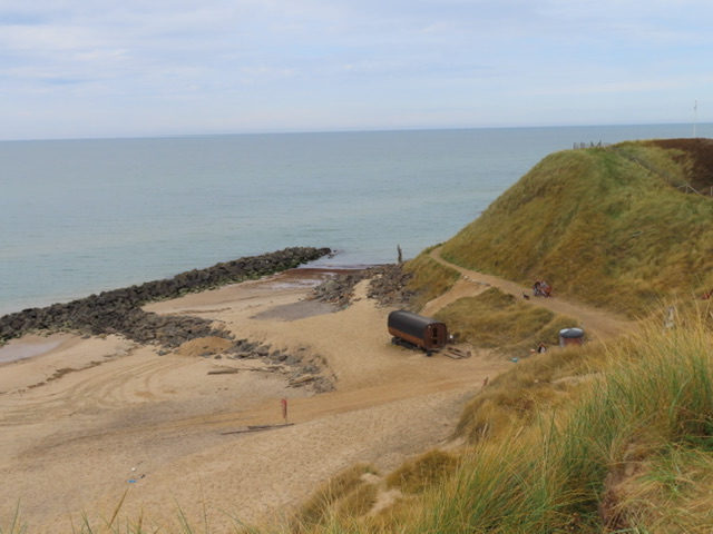 Die heurige Ausgangsbasis für unseren Aufenthalt in Nordjylland war Lønstrup. Auf einem netten, kleinen Campingplatz, liebevoll von Hendrik betreut, fanden wir für vier Tage Platz. Hier kreuzte ein roter „Roadsurfer“ mit einer Besatzung aus Wien und Mödling unsere Wege. Die Küste Jyllands nutzen die beiden „Jungverliebten“ für eine Tour zur Entspannung vom stressigen Alltag. Vom Treffpunkt am Campingplatz gings zum gemeinsamen Abendessen ins Cafe Havblik. Hier bekamen wir einen schönen Platz auf der Terrasse mit Meerblick zum Abendessen.