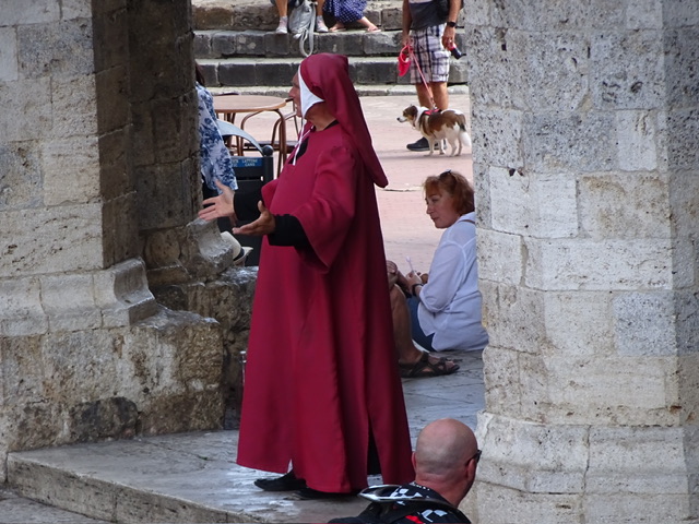 Dann dringen wir in das Gewusel von Tourist*innen und Händler*innen ein, wo in einer Art von seltsamer Symbiose mit Spezialitäten der Toskana gehandelt wird und allen dabei klar ist, dass dies zu Preisen mit „Tourist*innenabgabe“ passiert, und es trotzdem funktioniert.