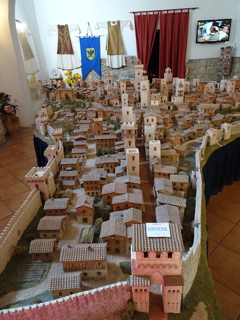 In einer Bruschetteria am Piazza della Cisterna stärken wir uns für den weiteren Weg durch die Altstadt. Das ursprüngliche „Arme-Leute-Essen“ stammt aus Mittel- und Süditalien. Frisch geröstetes Brot, wie etwa Pane Pugliese (mit harter Kruste), wird noch warm mit einer halbierten Knoblauchzehe eingerieben und anschließend mit Olivenöl beträufelt, nach Belieben gepfeffert und gesalzen. In unserem Fall wurde es mit diversen Köstlichkeiten belegt.
