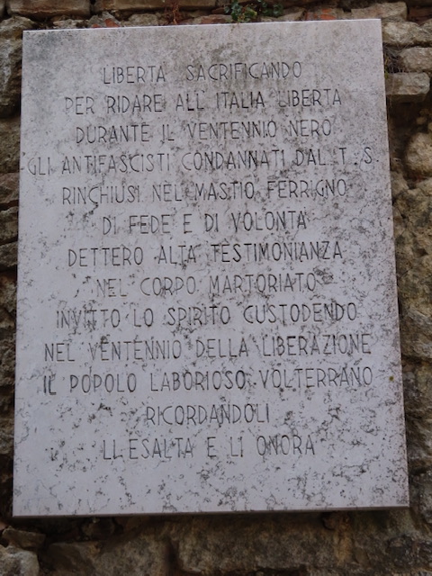 Kurz vor der Burg entdecken wir diese Gedenktafel, die an die verurteilten Antifaschist*innen in Voltera erinnert.