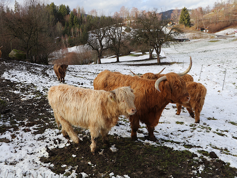 Das neue Jahr wurde hier auf der Hirschalm mit leichtem Schneefall begrüsst. Die Temperaturen haben sich um den Gefrierpunkt eingependelt und eine dicke Wolkendecke hüllte den Tag in verschiedenste Grautöne. Durch eine gemütliche Wanderung zum Wegererstein brachten wir eine zarte Stimmung in unsere müden Seelen und Glieder.