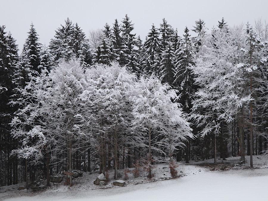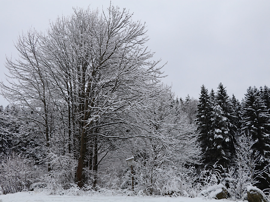 Nach den milden Temperaturen der Tage nach Silvester kommt der Schnee und die Kälte zurück. Bereits im Dezember des Vorjahres war der Mühlviertel der Kältepol Oberösterreichs. Minus 7 Grad Celsius heute in Unterweißenbach und wahrscheinlich bei uns auf der Hirschalm noch tiefer werden sich die Minusgrade in den nächsten Tagen noch steigern. Selbst bei uns im Holzhaus haben wir in den Räumen mit Wasserleitungen die Heizungen leicht aktiviert. Der Schwedenofen im Hauptraum versorgt uns während des Tages mit angenehmer Wärme.