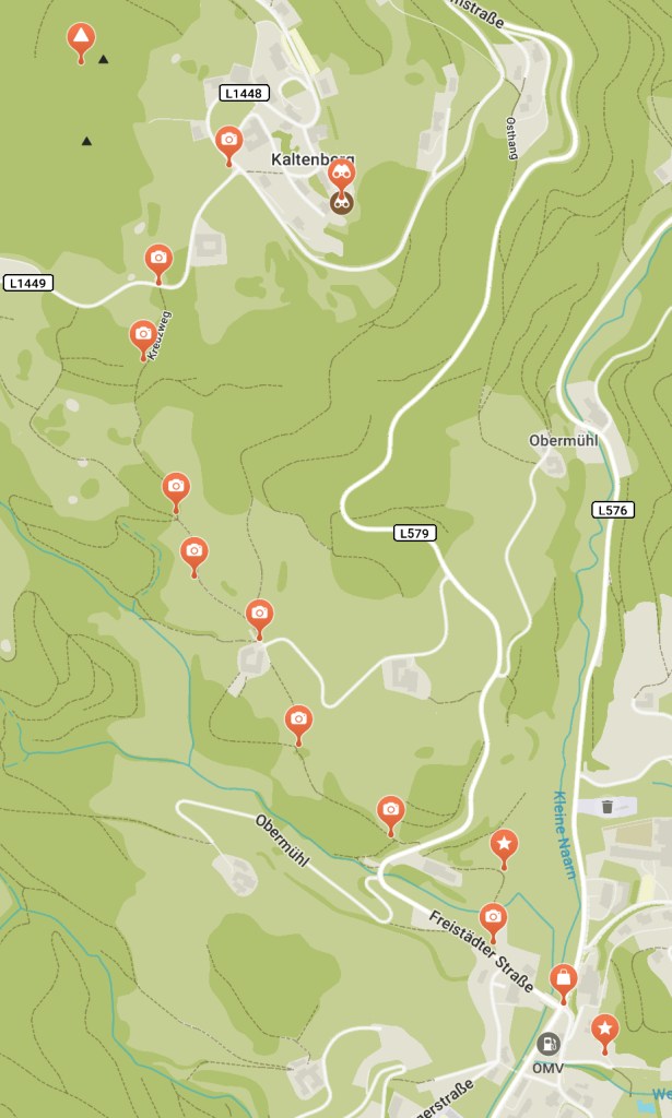 Im Ort haben wir uns auf die Suche und der Lösung eines Multi-Cache begeben. Wir können die Aufgaben, die ˋRepˋ in dem Multi stellt, gut lösen. Wie vorgeschrieben peilen wir die Dose an und kommen auch in das Gebiet mit dem Bauwerk, aber das Versteck finden wir trotz längerer Suche nicht. Um 15:30 treten wir den Rückweg nach Unterweißenbach an.